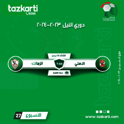 أعلنت شركة تذكرتي فتح باب الحجز لمباراه “الأهلي و الزمالك” للاسبوع السابع والعشرين فى دوري النيل لموسم 2023/2024 والمقرر لها ٢٥ يونيو الجاري .