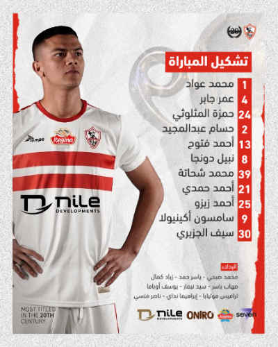 خط الهجوم : أحمد مصطفى ” زيزو” – سيف الجزيري – سامسون أكينيولا.ويتواجد على مقاعد البدلاء كلاً من، محمد صبحي وياسر حمد وزياد كمال ومهاب ياسر وسيد عبد الله ” نيمار” و يوسف أوباما وترافيس موتيابا وإبراهيما نداي وناصر منسي