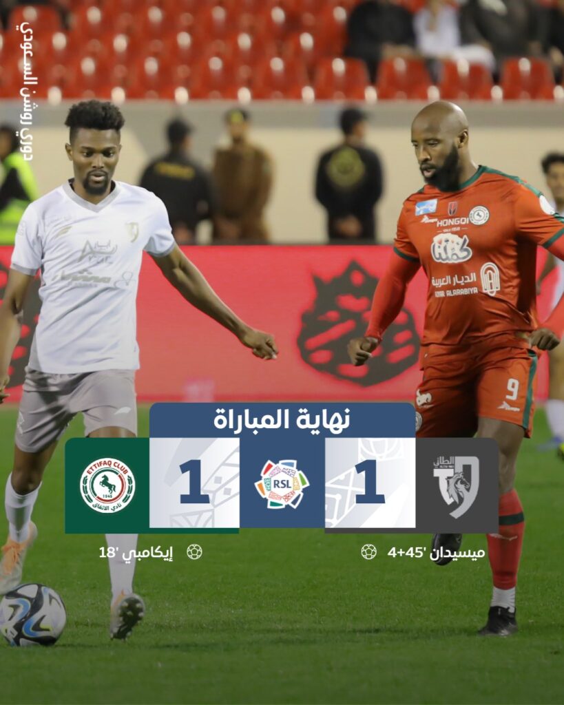 التعادل الإيجابي حسم لقاء الطائي والاتفاق بهدف لكل فريق