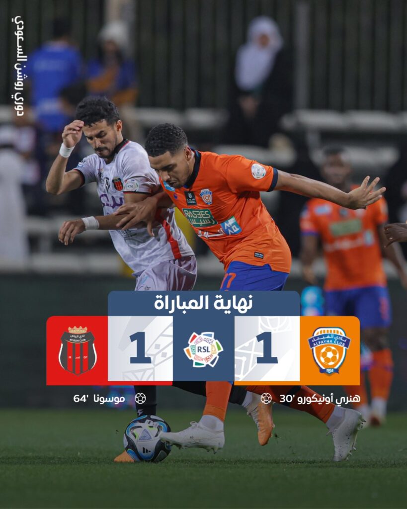 فرض الرياض التعادل الإيجابي بهدف لكل فريق امام الفيحاء