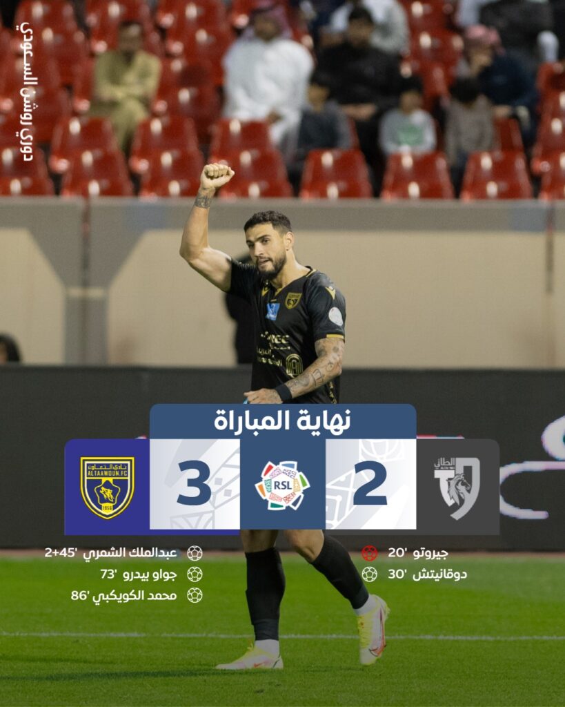 حقق «التعاون» فوزاً ثميناً خارج أرضه، وذلك على حساب مستضيفه «الطائي» 3/2
