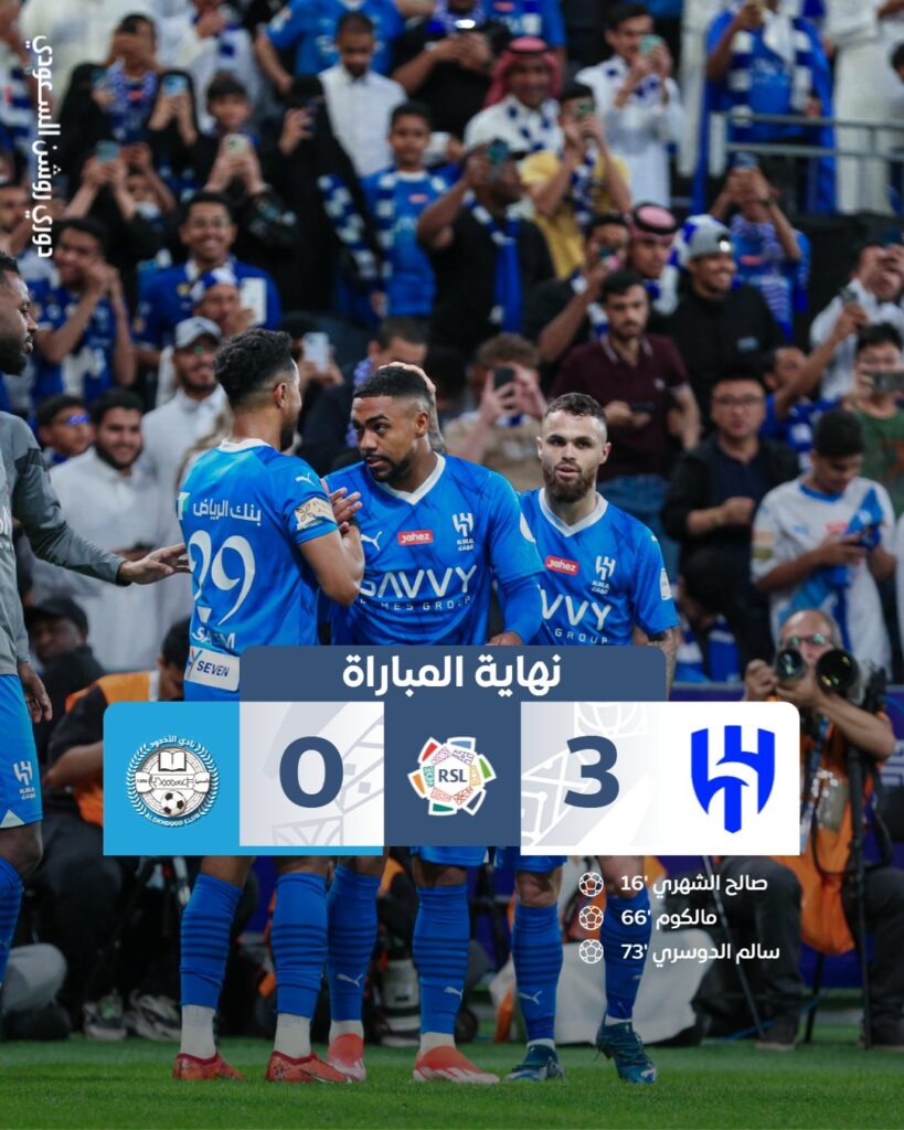 واصل الهلال سلسلة انتصاراته المتتالية رافعا رصيده إلى 74 نقطة في الصدارة وبفارق 12 نقطة عن وصيفه النصر، بينما تجمد رصيد الأخدود عند 24 نقطة في المركز السادس عشر.