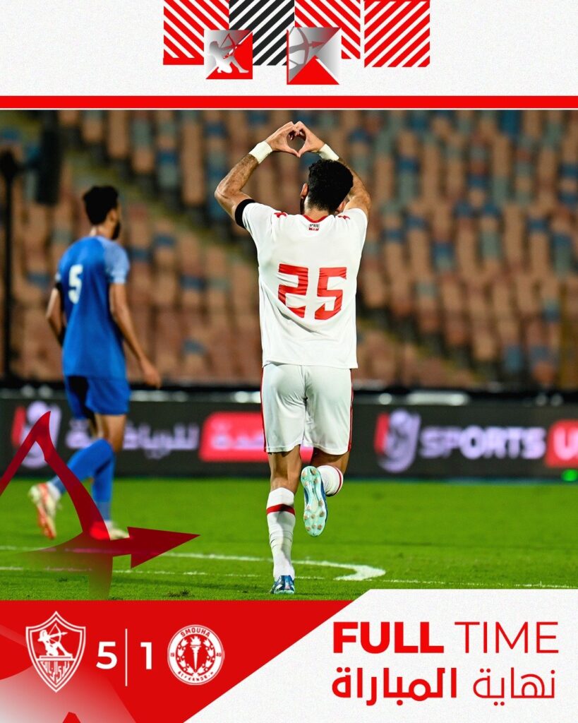 نجح الزمالك في تحقيق الفوز بخماسية  مقابل هدف على سموحة في اللقاء الذي جمع الفريقين بإستاد القاهرة
