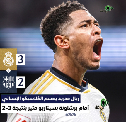 فاز ريال مدريد مع مضيفه برشلونة بثلاثة أهداف مقابل هدفين، في المباراة التي جمعت الفريقين، ضمن منافسات الجولة 32 في الدوري الإسباني.