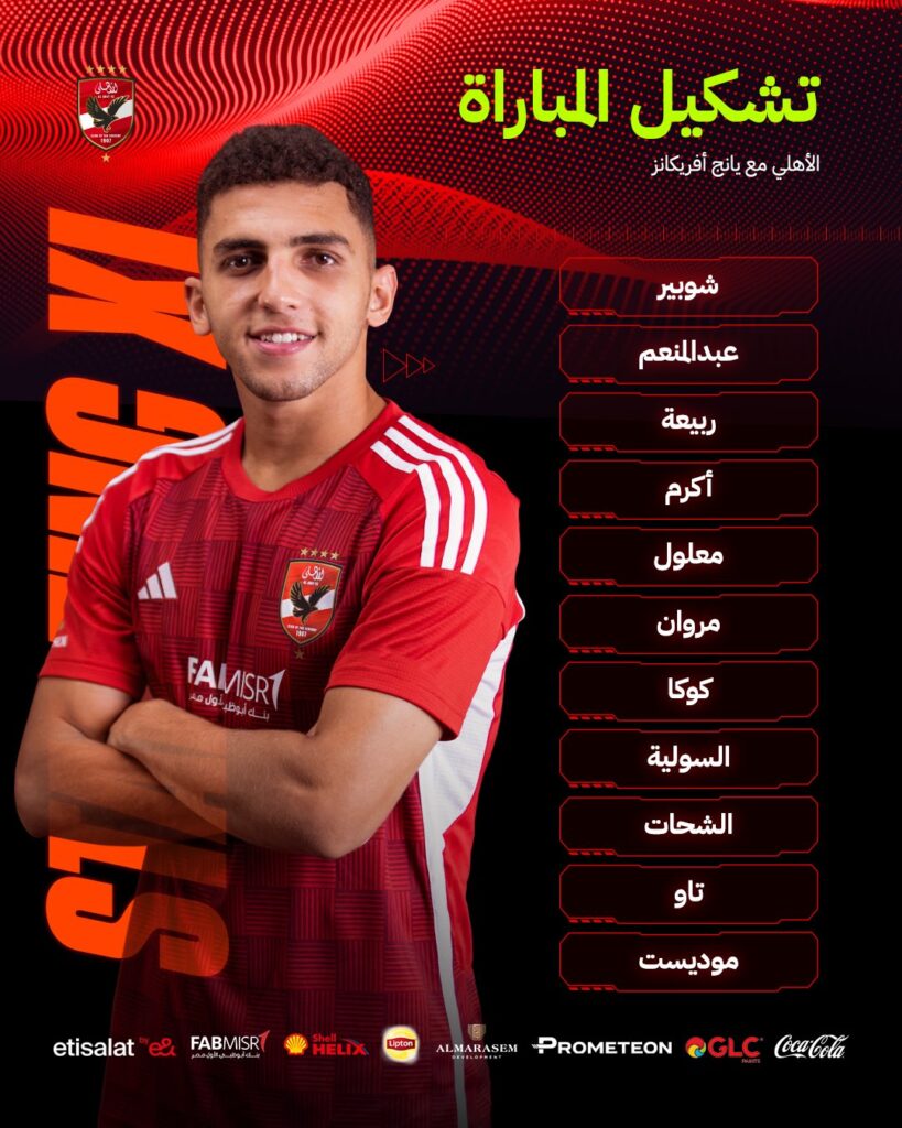 أعلن المدير الفني السويسري للنادي الأهلي مارسيل كولر تشكيل الفريق لخوض مواجهة يانج أفريكانز مساء اليوم مكون من: